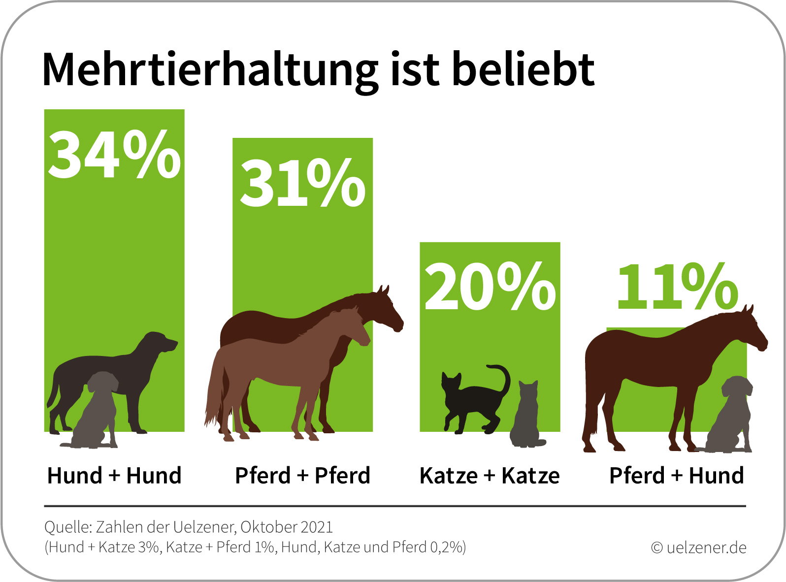 Uelzen, 23.11.2021 | Viele Heimtierfans halten gleich mehrere tierische Gefährten. Besonders beliebt sind die Kombinationen Hund/Hund und Katze/Katze. Aber auch verschiedene Tierarten werden oft zusammen gehalten: allen voran Pferd und Hund.